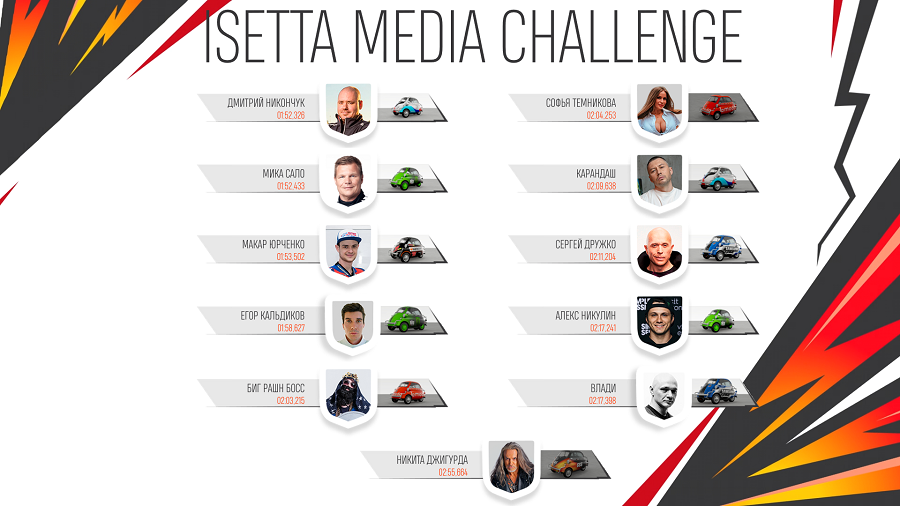 Гостями этапа были Влади из «Касты» и про-скейтер – Егор Кальдиков. Они поучаствовали в фан-заезде Isetta Media Challenge, на данный момент таблица медиа заезда выглядит следующим образом: