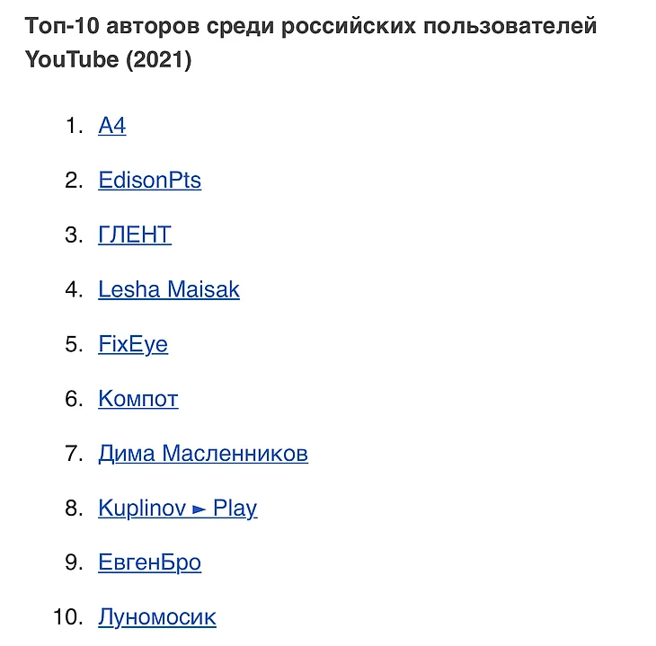 YouTube опубликовал топ-10 самых популярных авторов русскоязычных каналов на платформе.