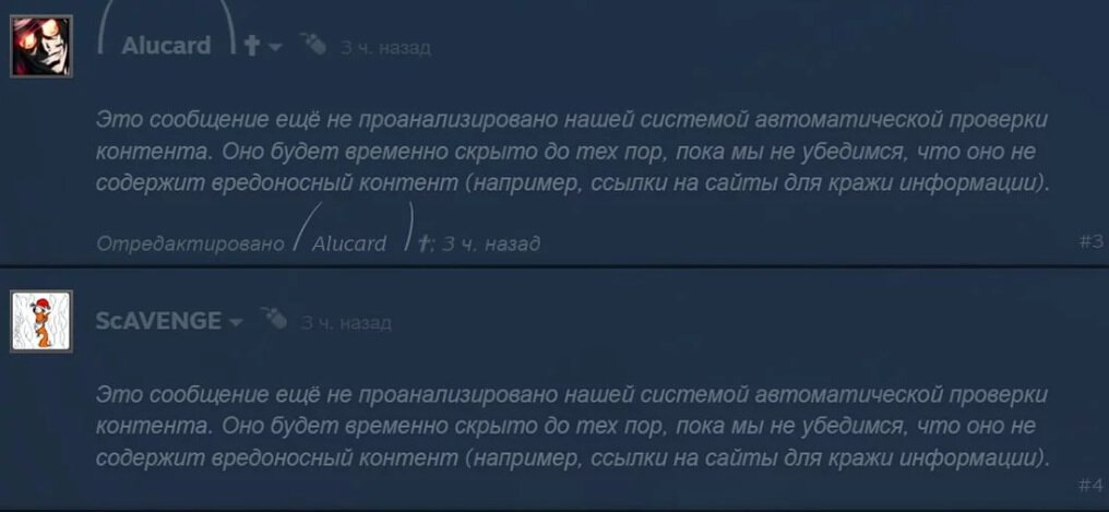 При попытке оставить новый комментарий в любом месте платформы (как под новостями разработчиков, так и в обсуждениях игр), текст сообщения не отображался а вместо него появлялось предупреждение о том, что комментарий не прошел проверку и временно останется скрытым.