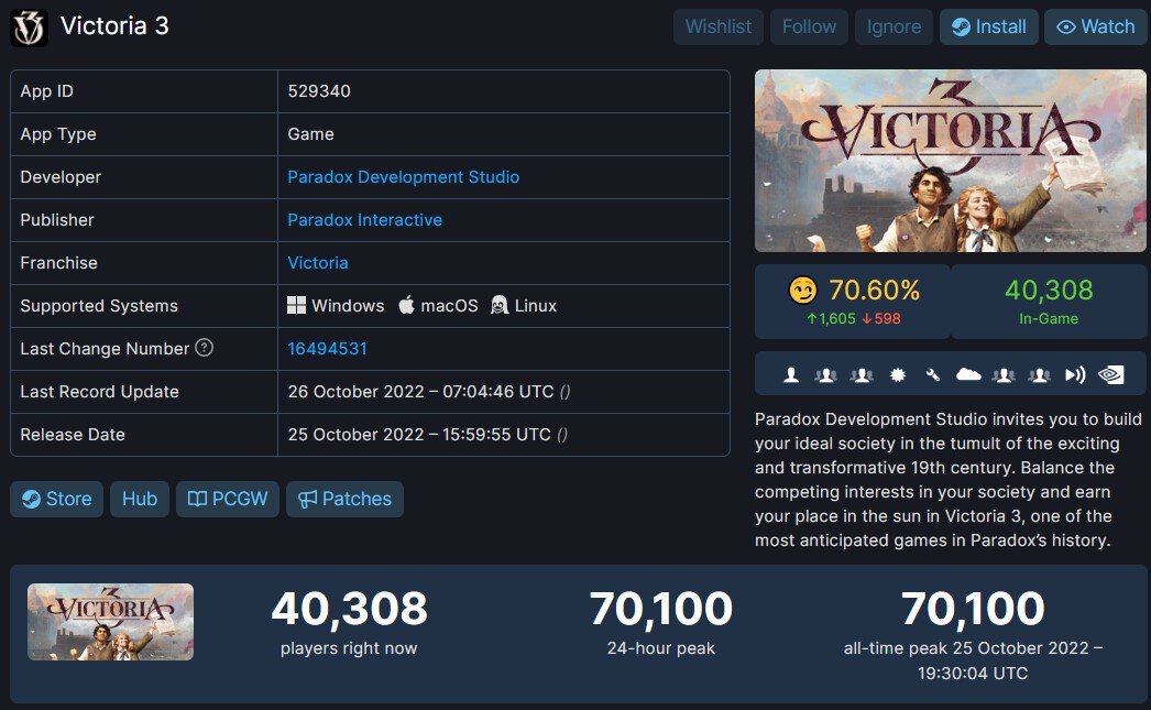 Пиковый онлайн Victoria 3 в Steam превысил 70 тысяч человек – игра вышла 25 октября