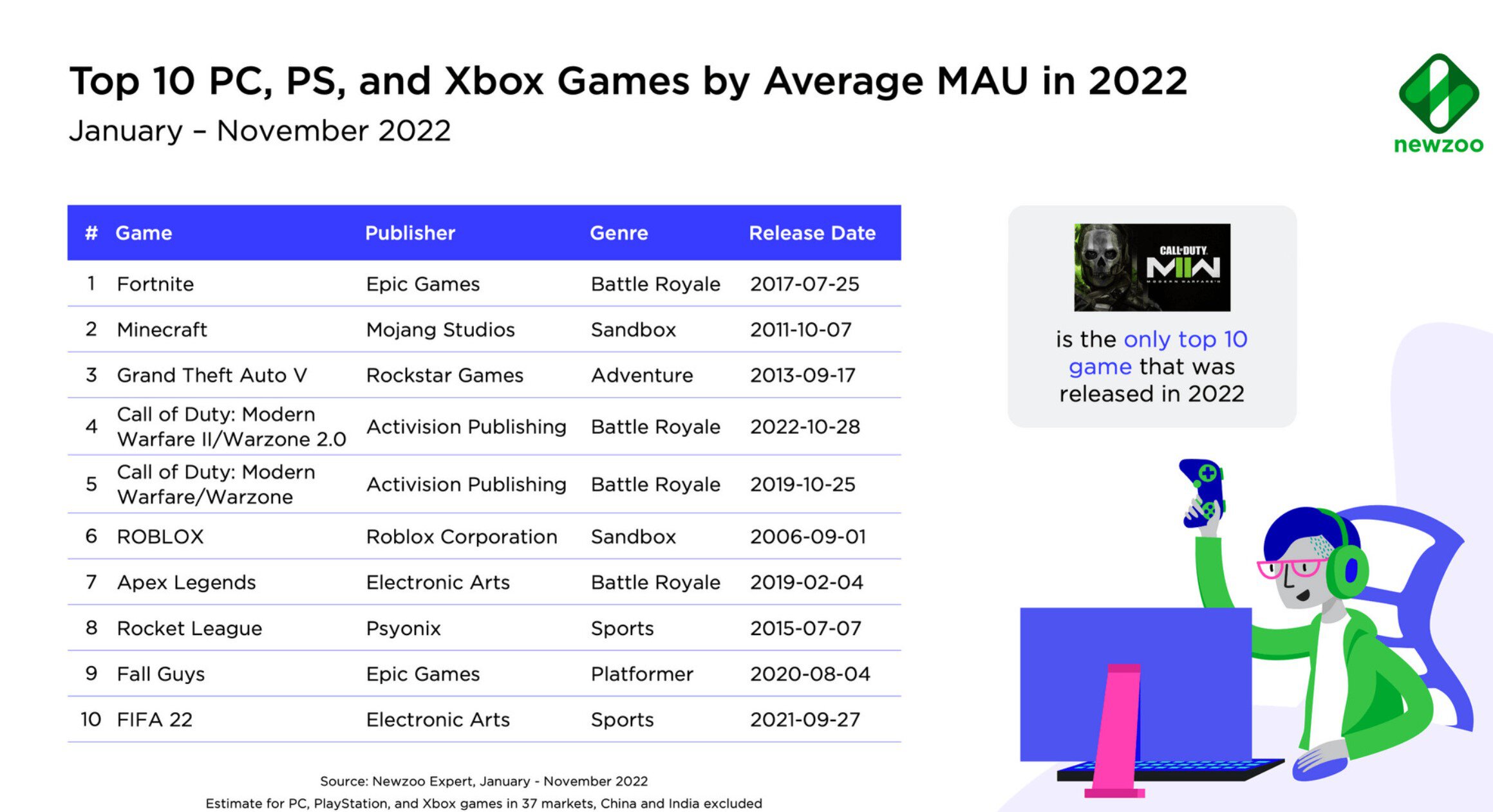 Аналитическая компания Newzoo опубликовала список самых популярных игр в 2022 году.