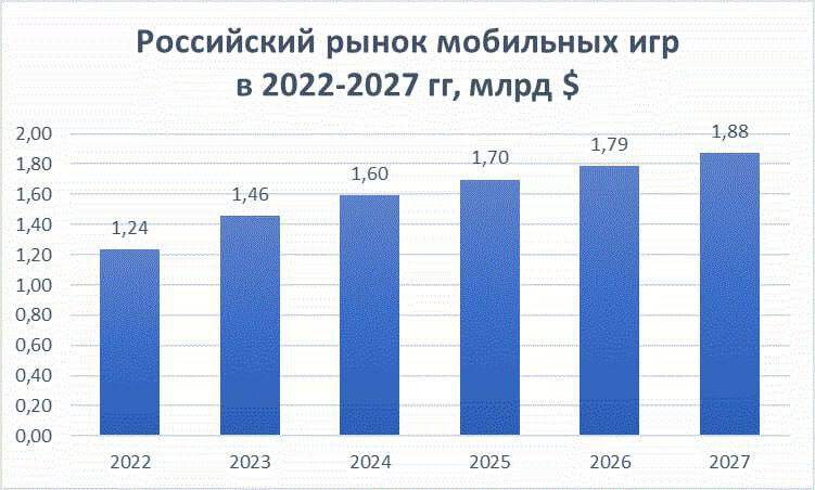 Отмечается, что в 2023 году объем рынка мобильных игр в России в 2023 году может вырасти на 20% - c 1,2 млрд до 1,4 млрд долларов.