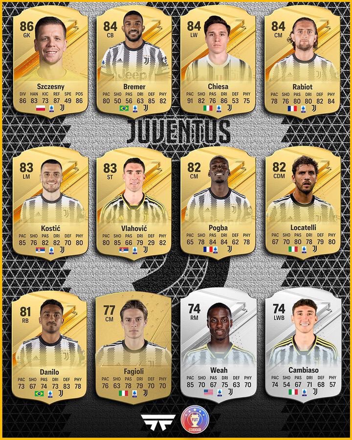 Шченсны получит самый высокий рейтинг в «Ювентусе» в FC 24 – 86, Кьеза и Бремер – 84, Погба – 82