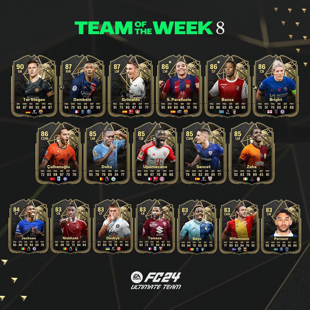 Самый высокий рейтинг на этой неделе у вратаря «Барселоны» Марка-Андре Тер Стегена (90). Рейтинг 87 получил полузащитник «ПСЖ» Усман Дембеле.