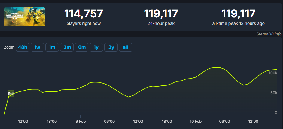 Шутер Helldivers 2 стал первой игрой Sony с онлайном более 100 тысяч игроков в Steam
