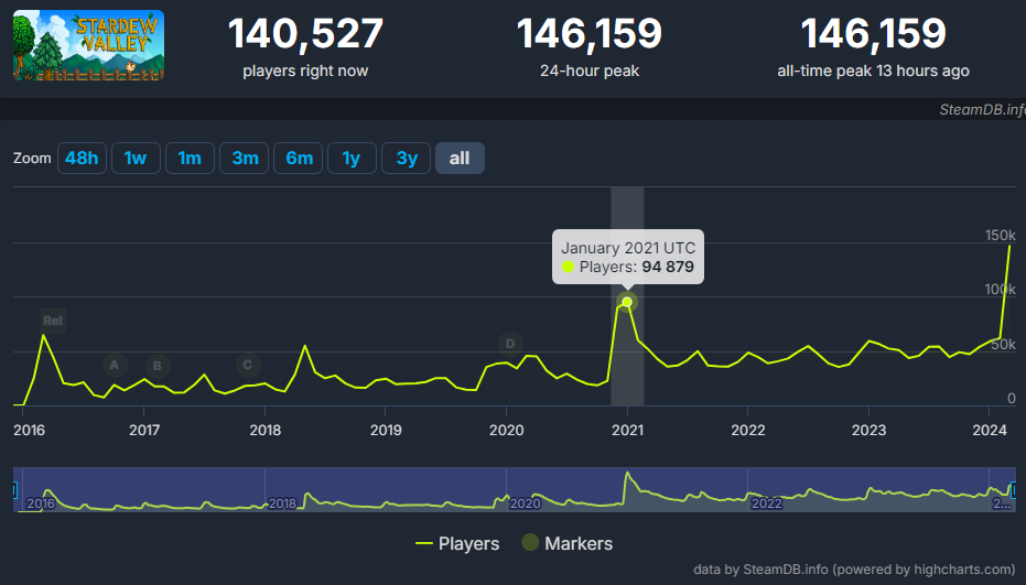 Stardew Valley побила рекорд по онлайну впервые за 3 года.