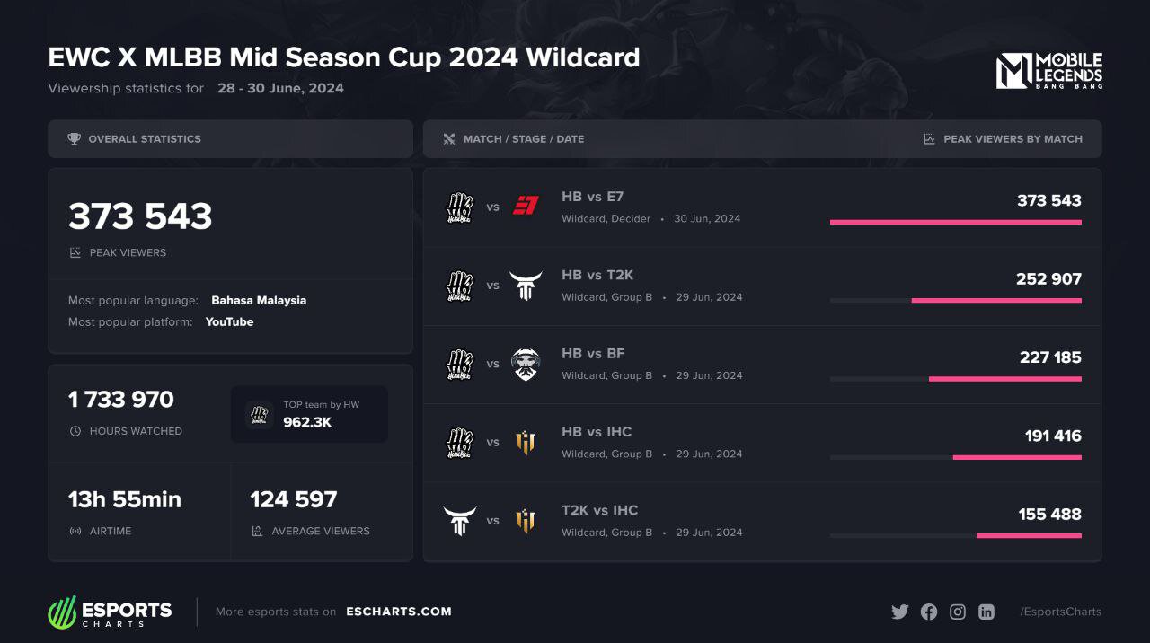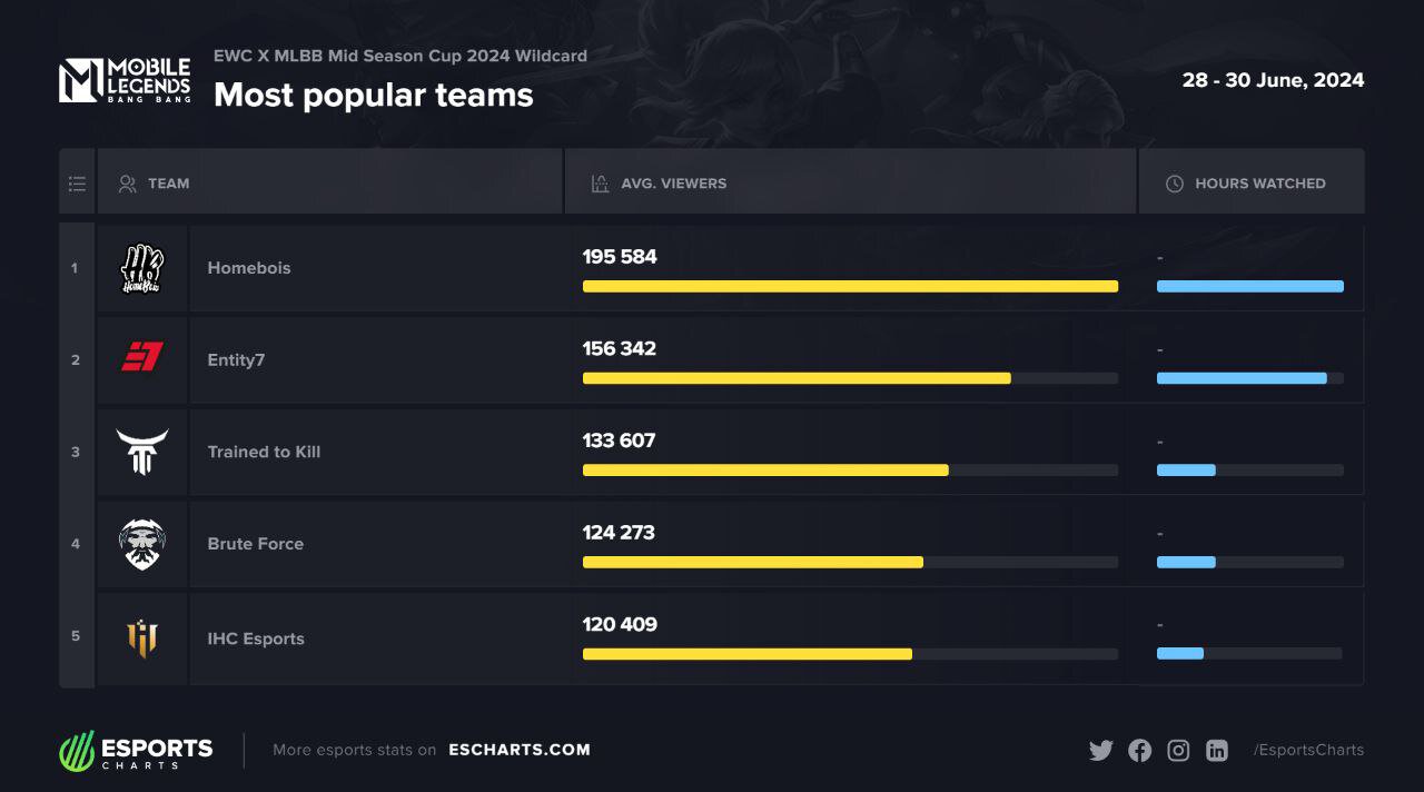 Лидером рейтинга стали Homebois из Малайзии, которые вышли в основную стадию чемпионата без поражений в группе, – 195 тысяч зрителей.