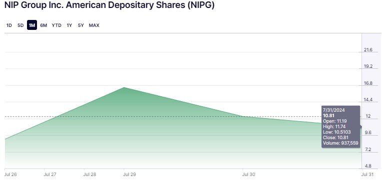 На данный момент акции NIP Group стоят $10,81. Максимальная стоимость достигала $16,5.