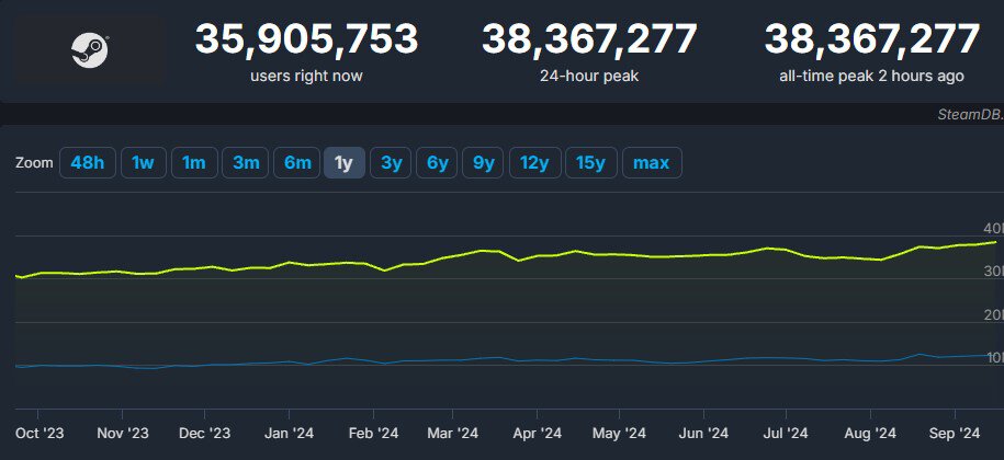 Steam обновил рекорд по онлайну в 6-й раз с начала марта – 38,3 млн одновременных пользователей
