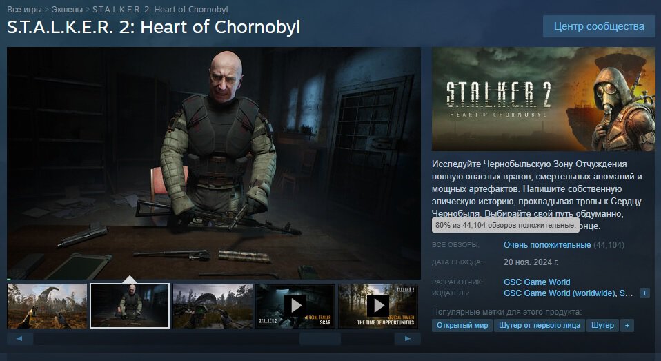 Оценка «Сталкера 2» в Steam перевалила за 80% положительных отзывов.