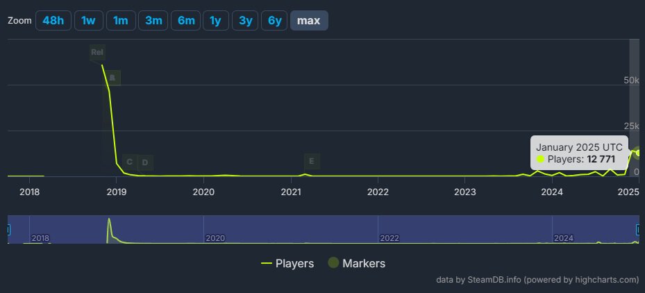 В ночь с 31 декабря 2024 года на 1 января 2025 года в Artifact зашло свыше 12,7 тысячи игроков.
