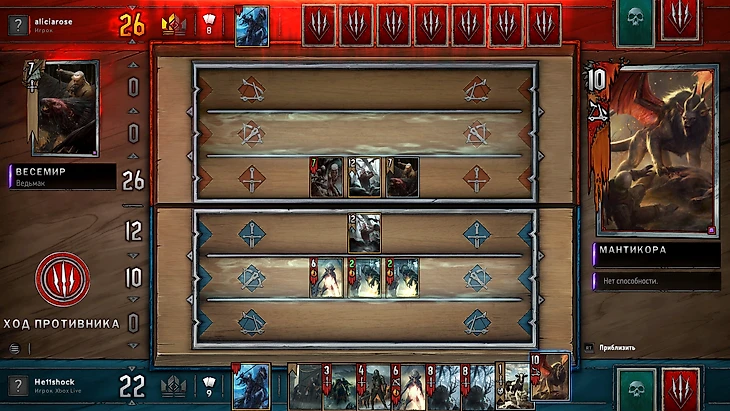 Если вы скрепя сердце уже проводили ведьмака Геральта на пенсию, вы явно поторопились – ему предстоит как минимум еще одна битва. И если бой за корону лучшей ролевой игры в открытом мире он выиграл без труда, то на территории коллекционных карточных игр у него могут возникнуть проблемы, с которыми не помогут справиться даже ведьмачьи эликсиры. Ведь Hearthstone – финальный босс пострашнее всей Дикой Охоты вместе взятой. Гвинт вырос из мини-игры в The Witcher 3: Wild Hunt – он должен был внести разнообразие в игровой процесс и дать игрокам возможность отдохнуть от основной сюжетной линии. Но Гвинт перевыполнил план настолько, что многие забили на спасение Цири и отправились в рейд по кабакам за уникальными картами. Слухи о самостоятельном Гвинте стали ходить сразу же, а разработчики из CD Projekt Red не стали тянуть с анонсом. Уже этой осенью начался закрытый бета-тест игры, которую многие называют главным конкурентом Hearthstone. Гвинт как киберспорт Конечно, без Hearthstone не было бы не только Гвинта, но и целой серии подобных игр. Разработчикам всего мира не дает покоя слава игры Blizzard, которую якобы собрали «на коленке». Собрали так, что Hearthstone встал в один ряд с «большой тройкой» киберспортивных дисциплин. Пусть создатели пеняют на удачное стечение обстоятельств сколько угодно – они проделали огромный объем работы, и успех был предсказуем. Чтобы игра стала киберспортивной дисциплиной, должны сойтись несколько переменных: понятная игровая механика, отточенный баланс, зрелищность и достаточное количество ресурсов для продвижения. Если один из перечисленных компонентов выпадает – вы вряд ли увидите игру на киберспортивных площадках. Механика Игровой процесс Гвинта довольно прост. Вы собираете колоду из 25-30 карт. Есть карты существ – у каждого свой показатель силы. Сумма этих показателей с одной и другой стороны составит итоговый счет. Есть специальные карты – это заклинания, погодные эффекты, ловушки и эликсиры. Они либо поднимают силу отрядов, либо понижают. Побеждает тот, кто набрал больше очков. Есть интересные находки вроде карт-шпионов, которые ложатся на сторону противника взамен на какое-нибудь игровое преимущество. Но, в целом, игра сводится к тому, чтобы набрать максимальное количество очков и потратить ресурсов меньше, чем соперник. Партия длится до двух побед, между раундами игрок добирает несколько карт. Играть в это невероятно интересно. Здесь нет легендарных карт, которые могут перевернуть всю партию (привет Йогг-Сарону). Если противник поставил «имбу» на стол – смело отдавайте раунд. Карта отправится в сброс и в следующем раунде сопернику не поможет. В Гвинте главное – обхитрить оппонента, загнать его в невыгодную ситуацию, истощить ресурсы. Но отточенной механику назвать нельзя – пока что это хаос из возможностей. Стадия обмена карт – самое отвратительное, что есть в Гвинте. Вспомните муллиган из Hearthstone – три или четыре карты, которые отлично умещаются на экране. Игрок может оценить стартовую руку и отказаться от тех, которые ему точно не пригодятся. Сброс происходит одновременно. Муллиган в Гвинте – это пулеметная лента из 10 карт, растянутая на несколько экранов. Вы не можете беглым взглядом оценить свою руку и выполнить сброс – придется пролистать их все, сложить в голове и только потом сбрасывать. Причем карты меняются по одной, ка