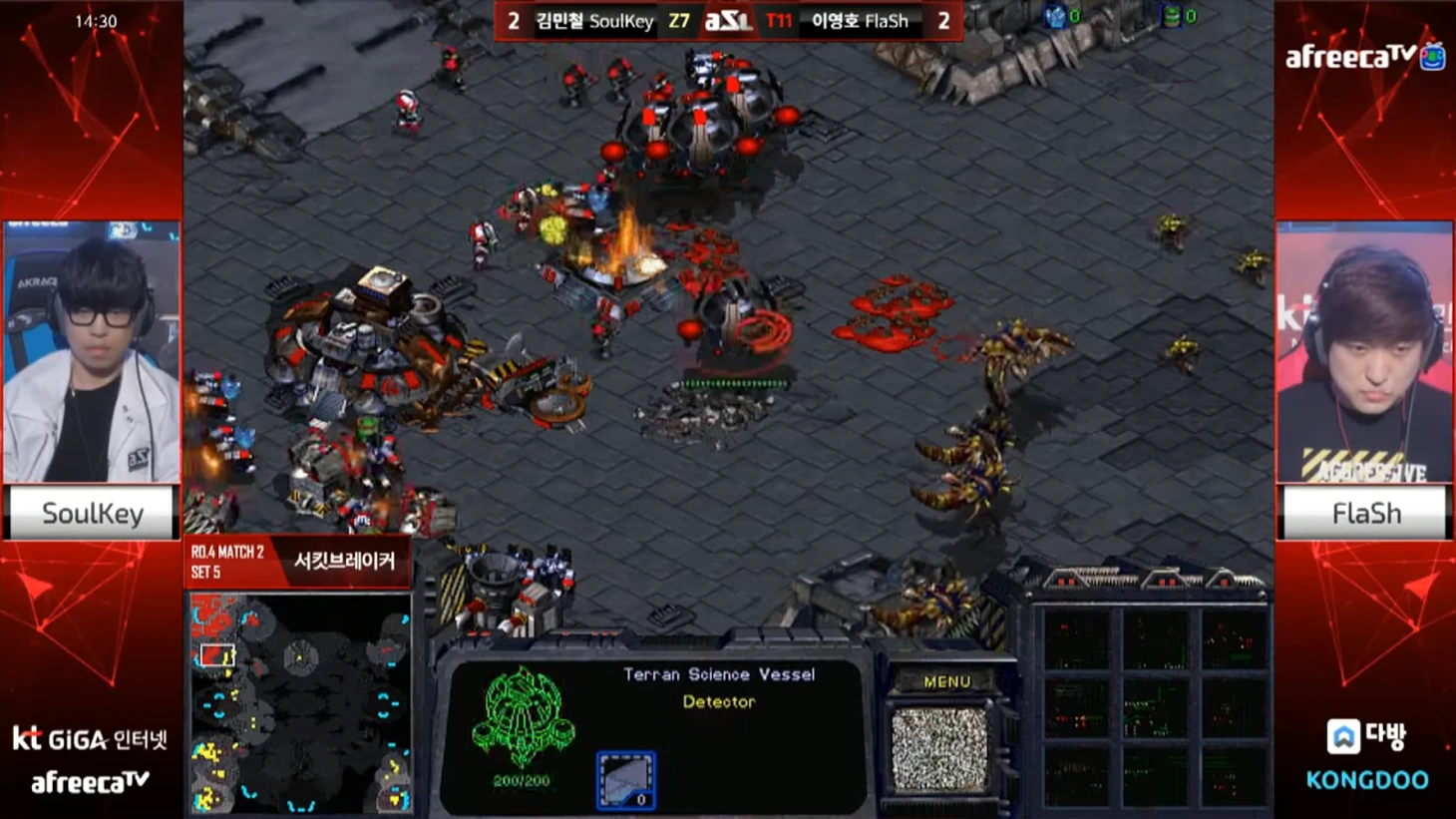 Первый сет - Сакит Брейкерс закончился победой Флеша в результате атаки кучкой маринов с медиками.На Камелоте Флэш подарил Соулкею победу поставив прокси барак далеко от мейна, а Соулкей избрал зерглинг раш после 4-го дрона.