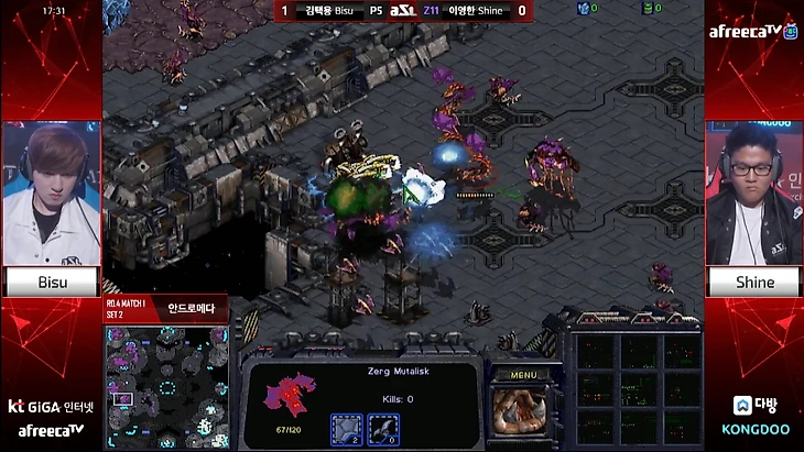 Сражения во второй игре на большущей Андромеде разворачивались в основном в воздухе. После раннего дропа гидры оставшуюся часть игры Шайн старался контролировать количество корсаров, появляющихся с двух старгейтов. Флот Бису из двух шатлов и кучи корсаров был загнан в ловушку воисками Шайна.