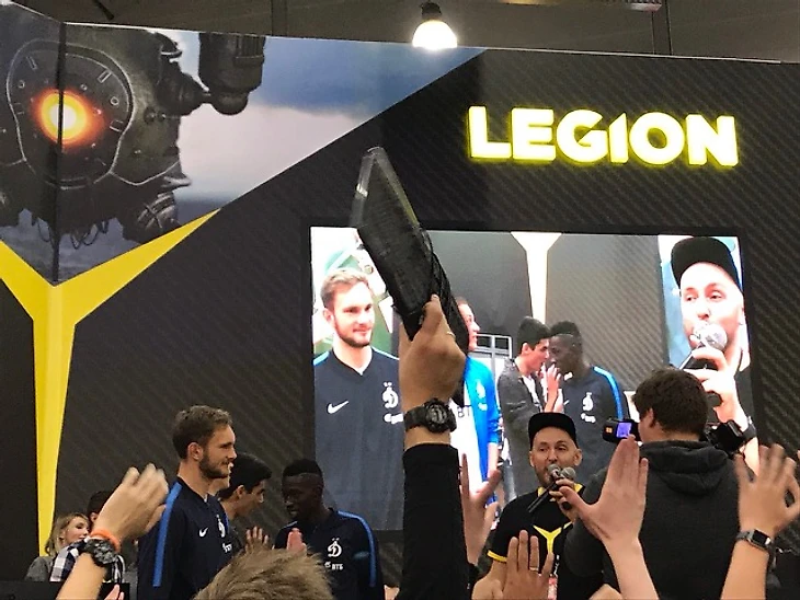 Скоро нашелся футбол: джойстики в цветах русских и европейских клубов (даже есть «Краснодар» и «Крылья Советов»), а также представители московского «Динамо», которые уже третий год делают активности на «Игромире». В этот раз на одну из площадок повесили бело-голубые плакаты и там же разыграли динамовские подарки: футболку, мяч, рюкзак. Геймеры на время стали фанатами и кричали «Динамо!», чтобы ведущий пригласил их к компьютерам сыграть против профессиональных футболистов. В этот раз Николай Обольский, Кали Тиам и Игорь Лещук (кажется) играли в Rocket League: управляли машинами и пытались при их помощи закатить мяч в ворота.