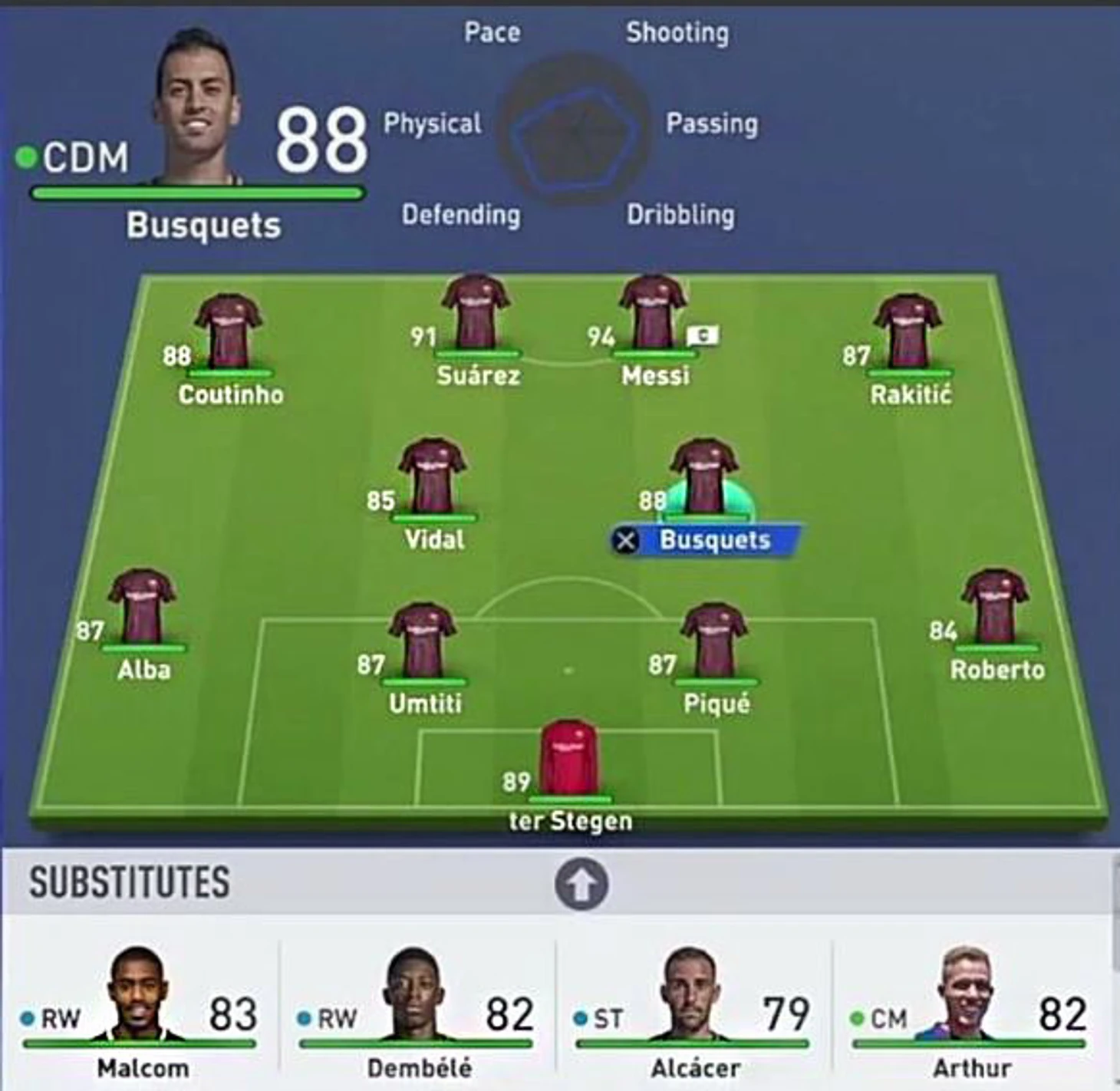 «Барсу» в демо-версии тоже не обидели. Месси не отстает от Роналду – у него тоже 94. Остальные игроки в атаке тоже имеют впечатляющий рейтинг: у Суареса 91, у Коутиньо – 88, Ракитича – 87. Линия защиты у испанцев выглядит сильнейшей среди топ-команд – ни один игрок не опустился ниже отметки 84.