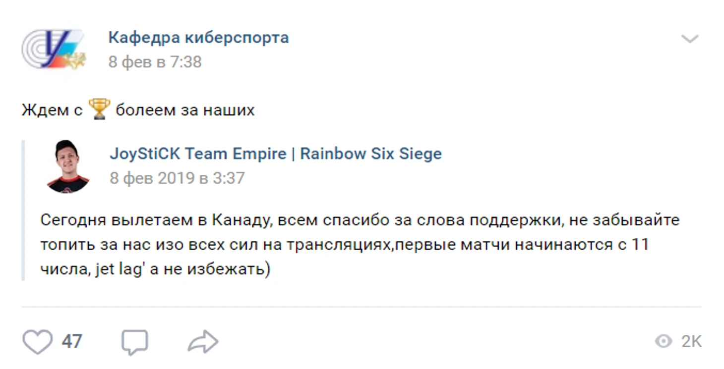 Да, в Москве действительно существует такая кафедра. Да, в ней сидят не просто так. Даниил – чуть ли не первый в мире случай, когда киберспортсмен мирового уровня пройдет профильную подготовку и потенциально станет дипломированным специалистом. Кстати, на кафедре переживают за своего воспитанника – многие посты в их группе VK посвящены именно Джойстику: