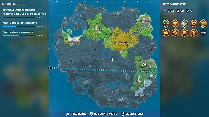 Главный повод вернуться в Fortnite для бывалых геймеров – полностью новая карта. Чтобы лишний раз замотивировать игроков ее исследовать, разработчики даже скрыли территорию за туманом войны – нужно прогуляться по всем окрестностям, чтобы узнать названия отдельных локаций и открыть ее полностью.