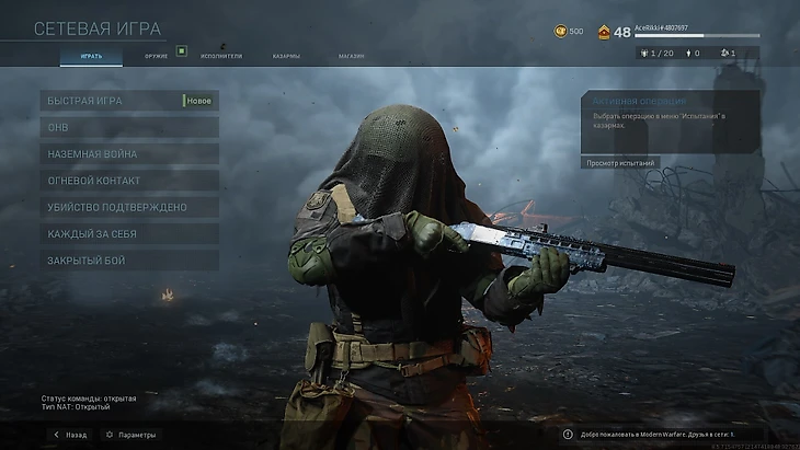 По режимам все достаточно стандартно. Есть уже знакомый «Каждый за себя», «Убийство подтверждено», «Командный бой» на 10 и 20 человек, «Превосходство» (захват точек) на 10 и 20 человек, «Штаб» (появляется одна точка, которую нужно захватить и удерживать) и «Найти и уничтожить» (классическая бомба прямиком из CS:GO). Новых режимов четыре: «Кибератака», «Огневой контакт», «Наземные войны» и «ОВН».