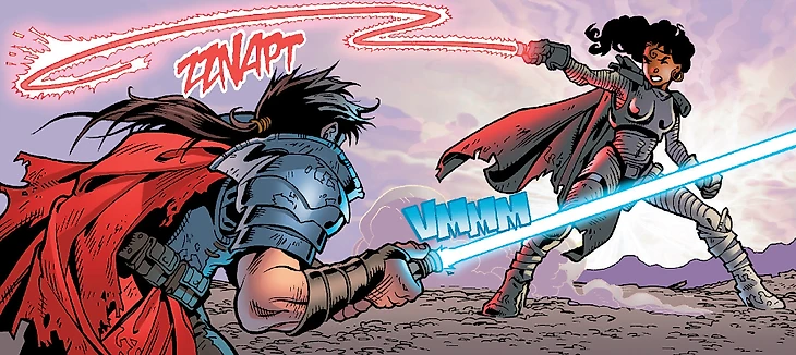 Одно из самых древних видов оружия во вселенной «Звездных войн». В отличие от обычного меча, лезвие темного было плоским и изогнутым, а каждый взмах издавал необычный свист и темные потоки материи.