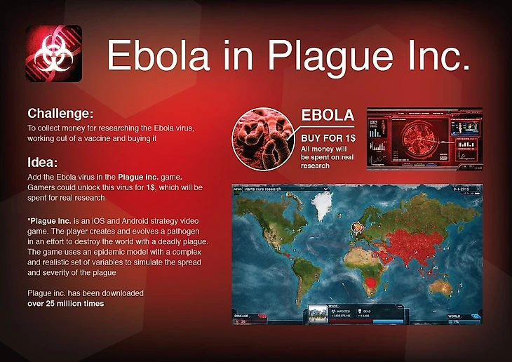 Тогда Ndemic Creations запустила сбор пожертвований на борьбу с реальной Эболой и собрала более 76 тысяч долларов. Игровой сценарий с болезнью можно было купить за доллар, который направляли на создание вакцины: