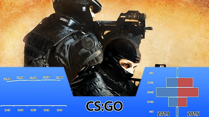 Обобщая, получается, что в CS:GO возраст профессионального игрока конечно в основном сосредоточен в 22-25 годах, но имеется и большое число игроков как моложе, так и старше. У дисциплины наблюдается довольно здоровая стабильность в возрасте и постоянной смене старых игроков на новых, что обеспечивает постоянный средний возраст на протяжении 5 лет.