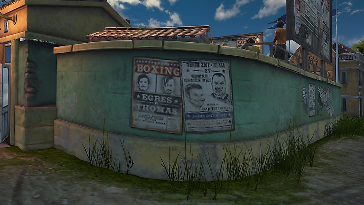А еще в ней есть арена для уличных боев. Если приблизить камеру, то видно, что к поединкам даже расклеивают настоящие афиши. Можно даже зайти в арену и посмотреть на поединок от первого лица!