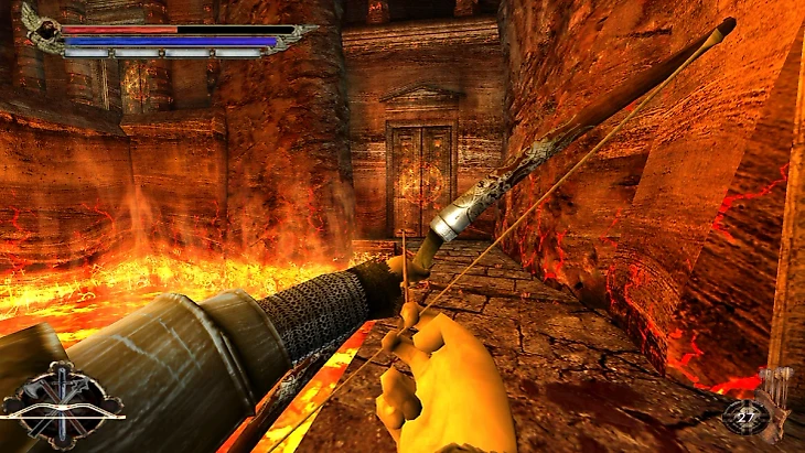 В игре есть возможность стрельбы из лука. При его использовании камера переходит на вид от первого лица, а двигаться становится невозможно. Такая условность оправдана невероятной силой лука – попадание в голову убивает сразу даже врага в шлеме. Вот только понять, когда ты попал прямо в голову, а когда нет – не всегда возможно. Иногда кажется, что вот оно – прямое попадание в голову, а враг продолжает идти на вас. А если враг подойдет к вам вплотную, попасть в голову станет почти невозможно. Но все же силу лука лучше не недооценивать. Он может помочь одолеть быстро надоевшего противника, при правильном использовании.