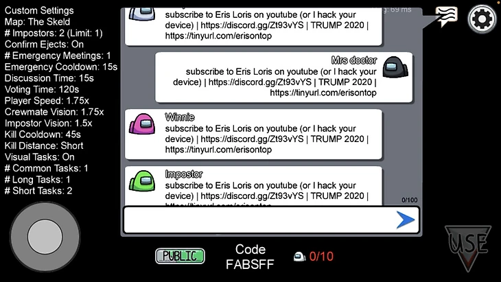 Спустя всего несколько дней республиканцы ответили, местом боевых действий тоже стала игра Among Us. Нет, Трамп не стал стримить на Twitch, так как до недавнего времени он был там забанен. Вместо этого его сторонники запустили массовую спам-атаку на сервера игры. В ходе атаки было взломано около 1,5 игровых партий. Каждый взлом сопровождался распространением лозунгов в поддержку Трампа.