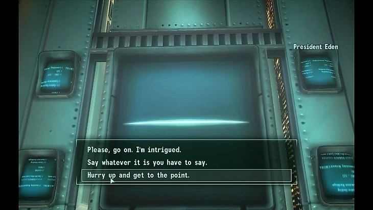 Самопровозглашенный президент США в Fallout 3. На самом деле, это никакой не президент, а самообучающийся суперкомпьютер, который смог убедить представителей Анклава в том, что он законный глава государства.