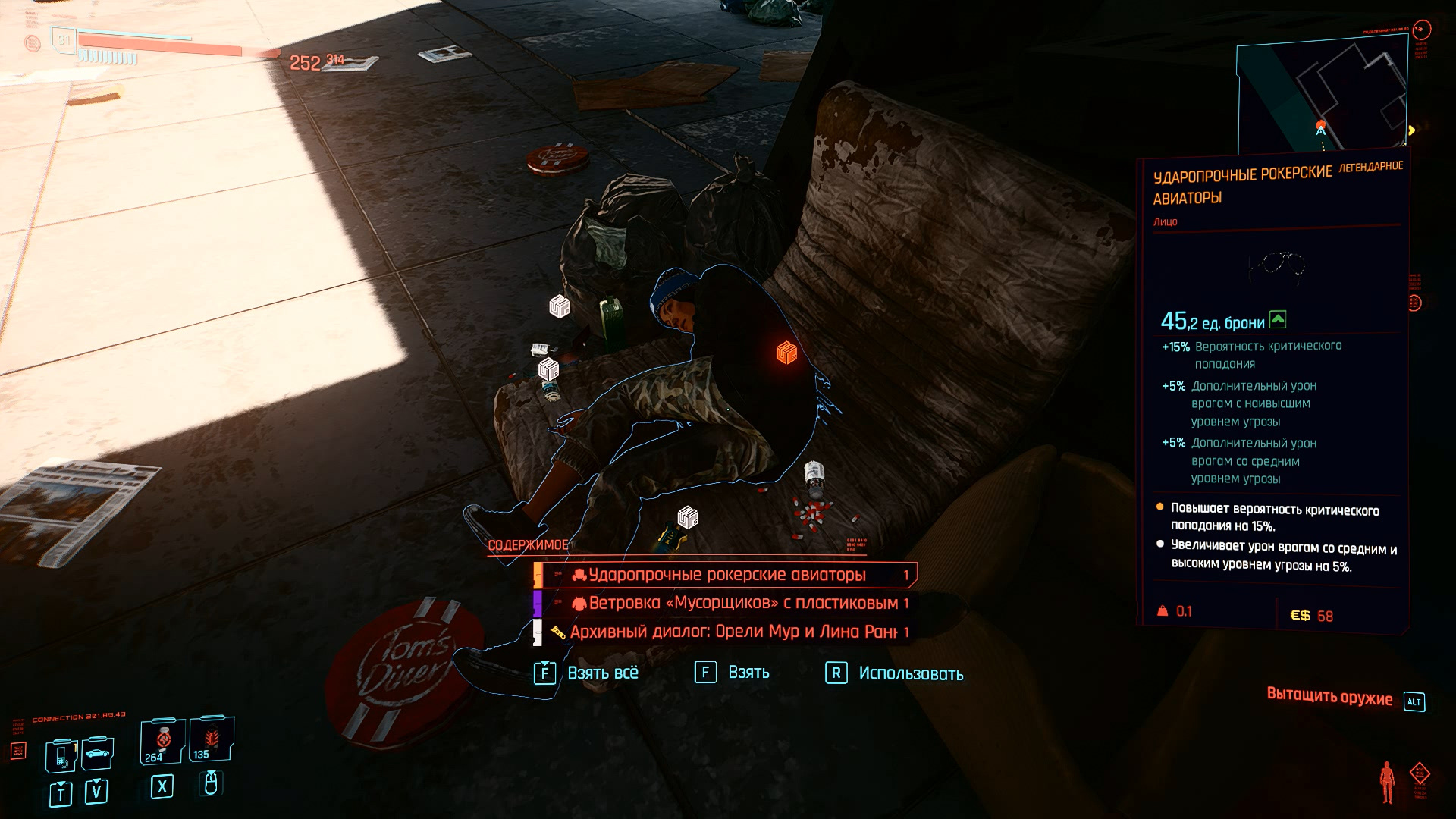 Заходите в него и смотрите на труп бездомной женщины слева. На ее теле находятся рокерские очки.