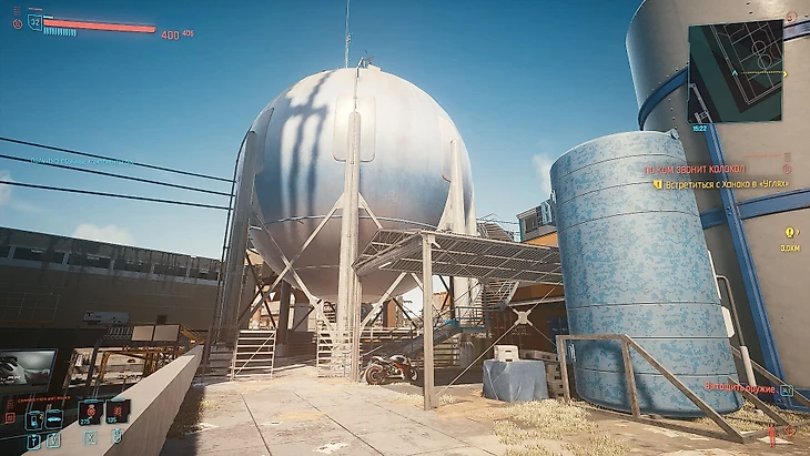 Так вот, штаны нетраннера находятся наверху этой круглой постройки. Поднимайтесь по лестнице.