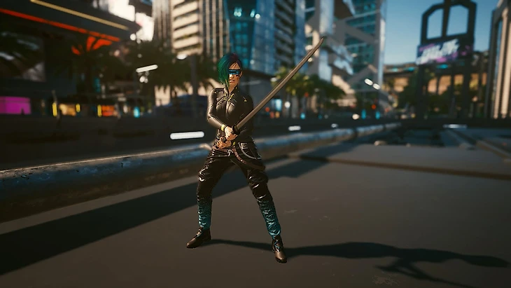 Куртки у этого комплекта нет (или ее еще пока никто не нашел). Вот так выглядит комплект брони нетраннера на женщине-Ви.
