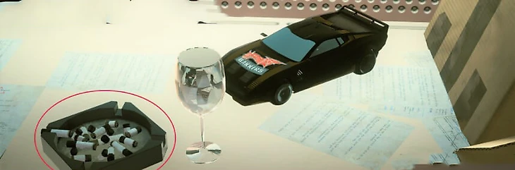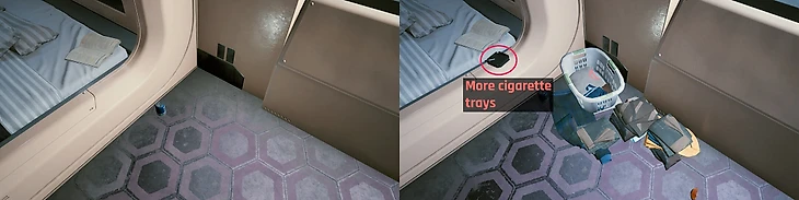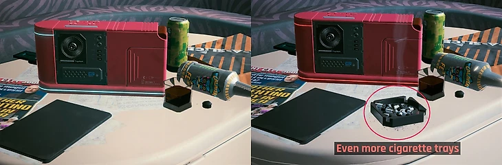 • Пепельницы появляются в квартире одновременно с Сильверхендом в голове Ви (с каждым актом пепельниц все больше).