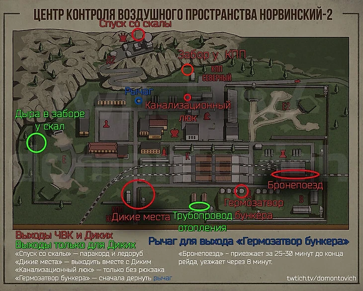 Карта с выходами для диких и ЧВК, только для диких и рычагом для выхода «Гермозатвор бункера».