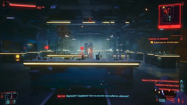 Он недолго будет читать нравоучения, а потом вы сможете поговорить с Томпсоном. В голове у Джонни появится идея, как освободить Альт – обратиться к Бестии за помощью. Как только вы поговорите с ней, группа агентов «Арасаки» нападет – и вы все еще играете за Сильверхэнда, поэтому придется стрелять. У него крутой пистолет, который при прицеливании подсвечивает соперников через укрытие, а также пробивает стены, поэтому затруднений в перестрелке не должно возникнуть.