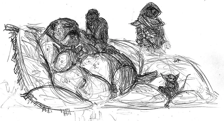 (Концепт-арт к Skywind с кормлением слоада)