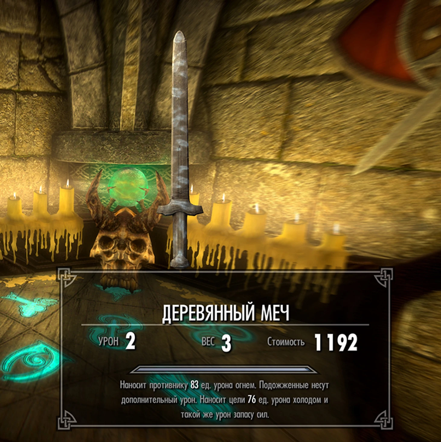 В дополнении Hearthfire появилась возможность вооружить усыновленных детишек с помощью деревянного меча. Игра считает его обычным оружием, просто с низким уроном – всего 2 единицы. Но в умелых руках и деревянный меч – балалайка, поэтому нас ждет долгий путь изучения кузнечного дела и зачарования. 100 уровень навыков достигается за пару часов бесконечного создания кинжалов и зачарования – а чтобы найти столько ресурсов, вам понадобится хотя бы немного поиграть в игру.