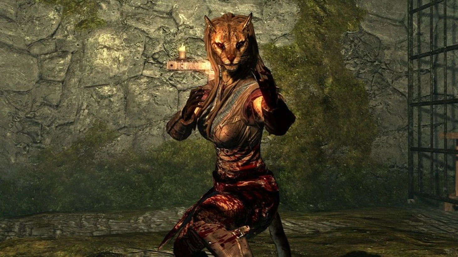 На самом деле, можно создать и мужчину, главное выбрать каджитскую расу. Особая расовая способность каджитов позволяет им наносить 15 дополнительного урона когтями. Первым делом вам нужно добраться до Рифтена, залезть в Муравейник Крысиной Норы и отмутузить Джиана Кулака, чтобы забрать у него особые перчатки борца – они наносят 10 дополнительного урона ударам без оружия. С них нужно снять зачарование, а потом на протяжении всей игры качать навык зачарования, чтобы перезачаровывать новые вещи на удары посильнее.