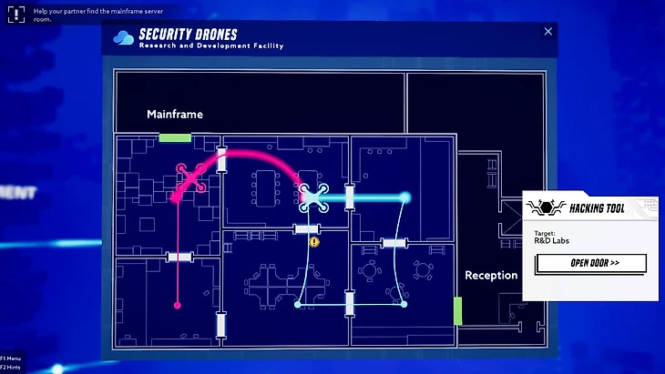 Нас ждет набор линейных миссий, где нужно выполнить очередность головоломок, чтобы украсть флешку, взломать сервер и т.д. Ближайший аналог – Keep Talking and Nobody Explodes, где двум игрокам надо сообща решать задачи для разминирования бомбы.