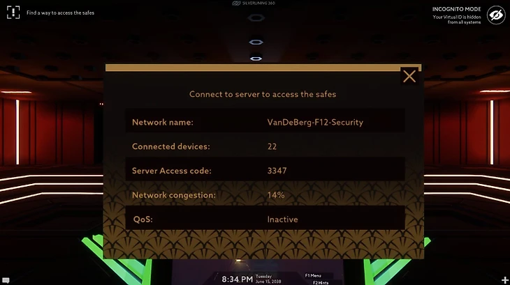 Второй минус – местами динамика игры проседает. Тут снова вспоминается Keep Talking and Nobody Explodes, где нет пауз и переходов между головоломками. Вы ограничены таймером, поэтому и катки получаются эмоциональными и динамичными. В Operation: Tango после успешного решения задачи мы ищем новую – иногда поиск затягивается надолго. Причем она может быть как у шпиона, так и у хакера, ведь мы находимся в разных пространствах. Шпион орудует в реальном мире – ходит по локации, ищет точки взаимодействия (компьютеры, лифты и т.д.) и ценную информацию (id сотрудников, ip-адреса компьютеров).