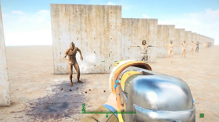 Вот что больше напоминает настоящую боевую зону – локация debugrange. Все, что здесь есть – много раздетых NPC, стоящих напротив бетонных стен в Т-позе, и станок для крафта.