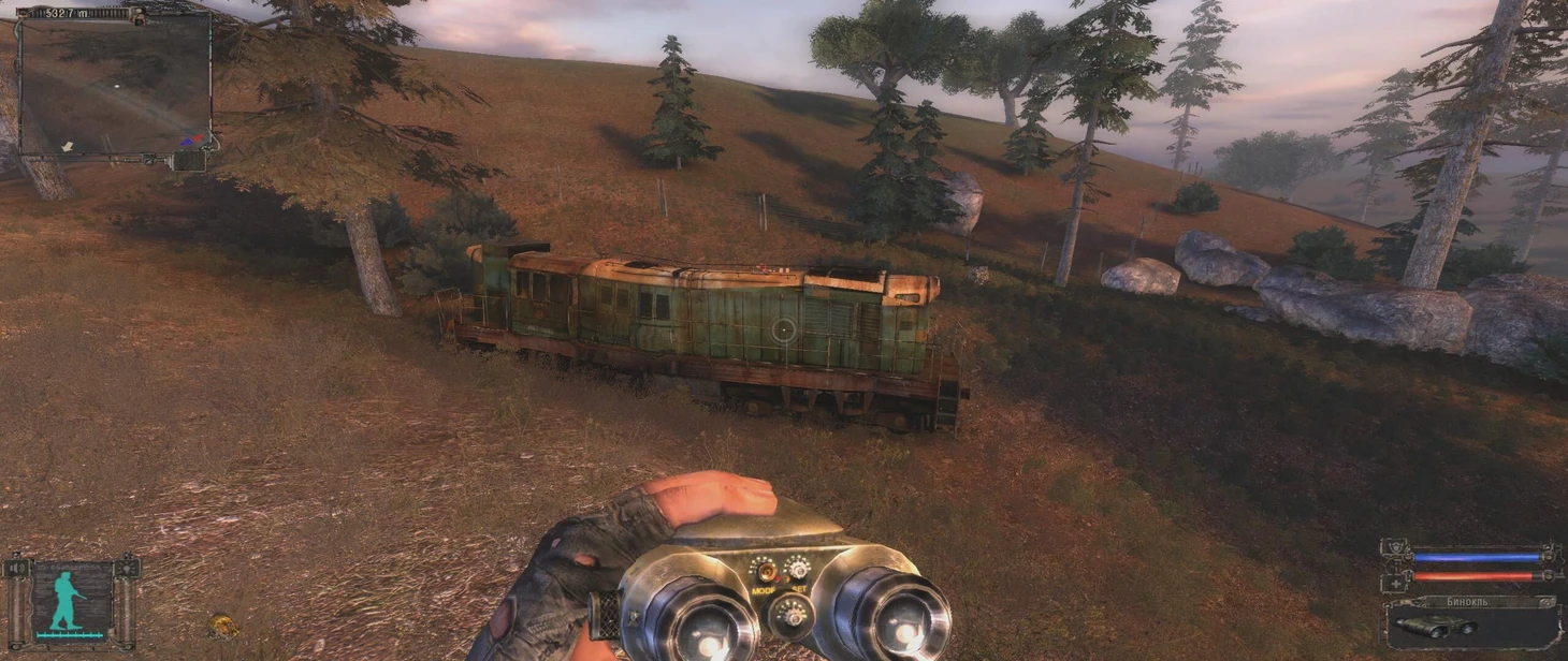 Простенькая нычка, но она могла отпугнуть многих аномалиями вокруг себя. Без потерь здоровья тут не обойтись, но если действовать быстро, то они будут незначительны. Итак, нас интересует крыша вот этого состава.