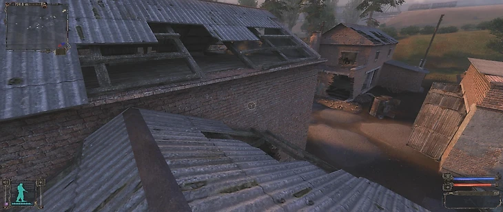 По балкам залезьте на крышу и перейдите в соседний дом – там небольшой контейнер и несколько деревянных ящиков с патронами.