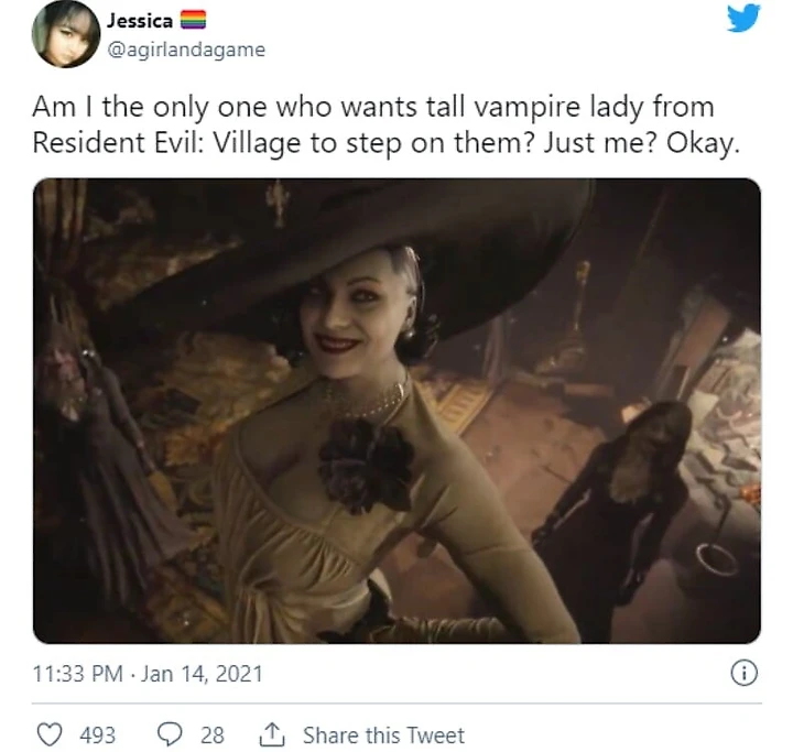 Бледная, аристократичная Леди Димитреску ростом в 2,9 метра привлекла неожиданное внимание к Resident Evil – такого количества фанарта, мемов и косплея интернет не видел уже давно. Причем фанаты не ограничиваются стандартной эротикой – фанаты толпами просят героиню наступить на них! Дошло до того, что на ютубе всерьез проверили, что испытает человек, если на него наступит Димитреску.
