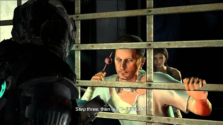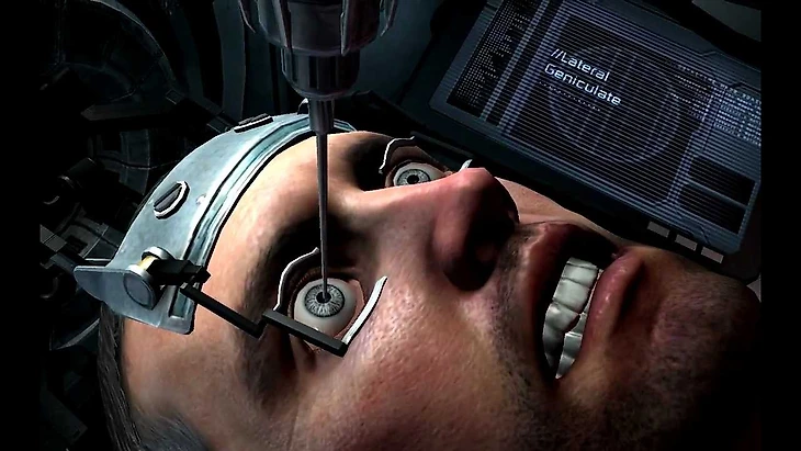 Тема с глазом поднимается в игре дважды, но, если сравнивать с операцией, за вторую сцену переживают меньше. По сюжету Айзек встречает выжившую после нападения некроморфов Элли Лэнгфорд, и они постепенно сближаются, чтобы сотрудничать. В один момент обезумевший исследователь «Обелисков» нападает на девушку с отверткой и выкалывает ей глаз. Хоть эта сцена происходит не с Айзеком, за Элли все равно страшно (спойлер – Айзек поможет ей с протезом).