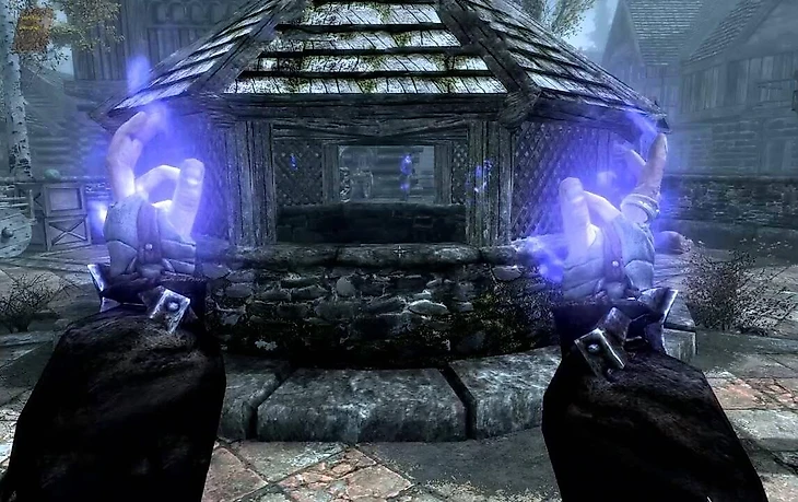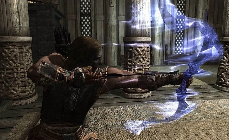 С помощью навыка «колдовство» можно научиться призывать лук: так не придется искать оружие дальнего боя и стрелы. Стрельба из магического лука прокачивает колдовство, которое можно использовать, чтобы призывать зверей и даэдра, способных потанковать, пока мы расстреливаем врагов. Лучше всего призывать ледяного атронаха: он довольно прочный и замедляет противников.