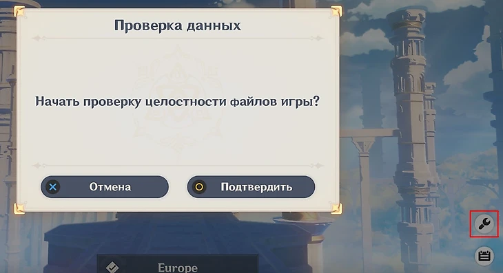 из открывшегося меню начните процесс проверки целостности файлов Геншина