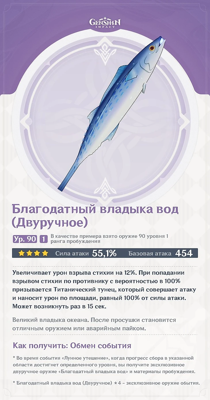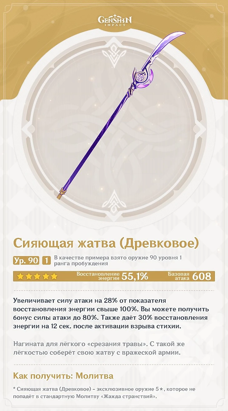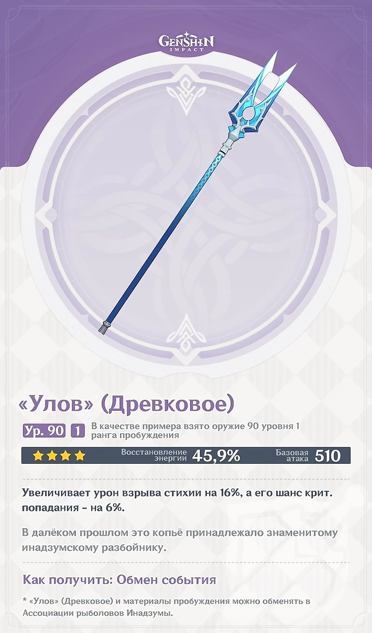 Как получить: награда, доступная только игрокам с PlayStation 4 и PlayStation 5. Награду вышлют на почту, когда вы получите 20 ранг приключений. После получения оружие можно использовать абсолютно на всех доступных платформах с Геншином.