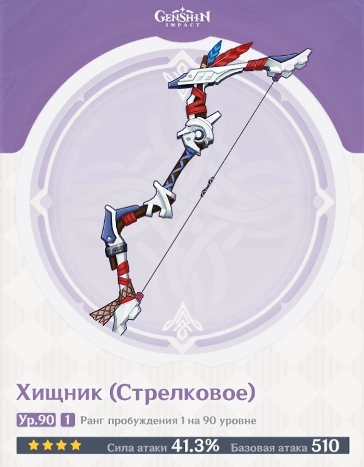 Сильный удар (доступно только игрокам на PlayStation Network) – нанесенный противникам Крио урон повышает урон обычной и заряженной атаки персонажа на 10% в течение 6 секунд. Эффект может складываться до 2 раз. Также когда Хищником экипирована Элой, сила атаки повышается на 66 единиц.